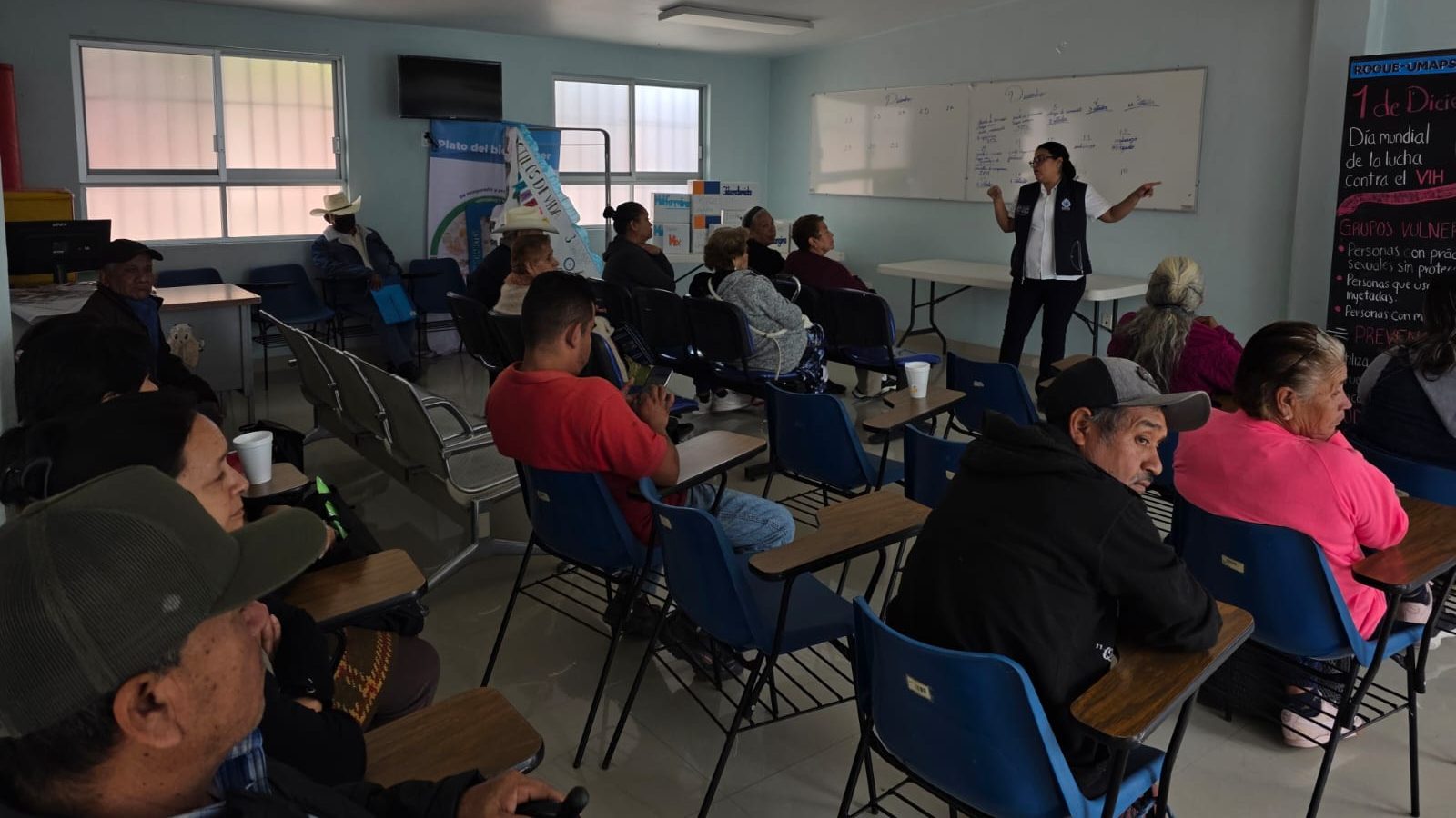 Como parte del fortalecimiento de las estrategias de salud pública, profesionales de UMAPS Rocke impartieron pláticas informativas y de concientización, orientadas a promover el conocimiento sobre las formas de transmisión del VIH, las medidas de prevención, la importancia del diagnóstico temprano y el respeto a los derechos humanos de las personas que viven con esta condición.